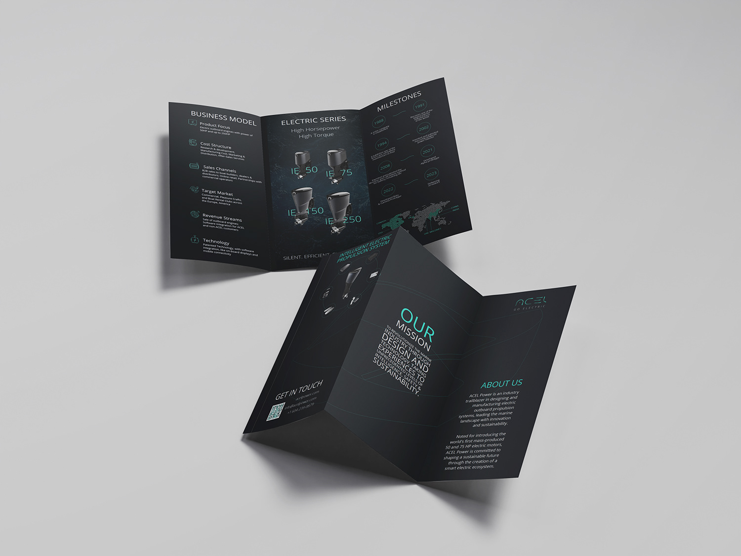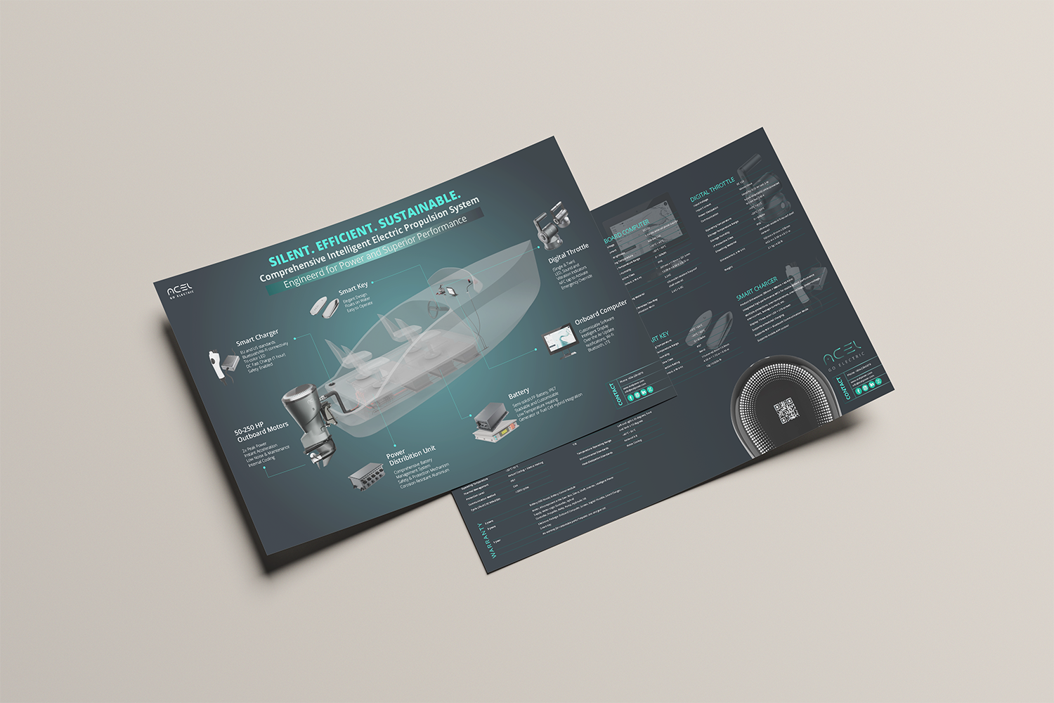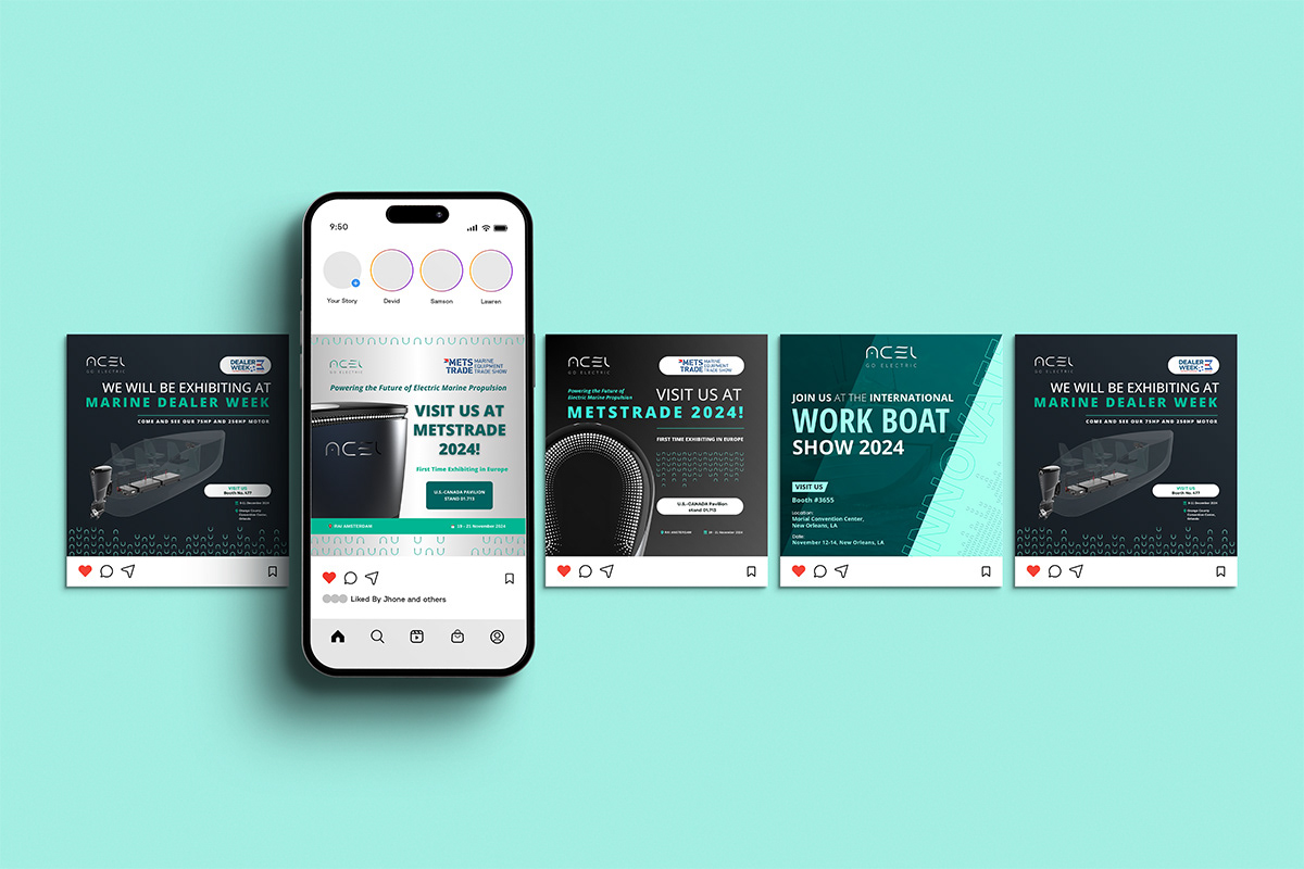 As the dedicated visual designer for ACEL Power, I created a cohesive brand presence across digital and print platforms. My role spanned web design, development of marketing materials such as brochures and catalogues, and graphics for social media campaigns. I was also responsible for designing icons, custom graphics, and leveraging AI-generated imagery to support both product development and the visual storytelling of cutting-edge electric boat technologies.